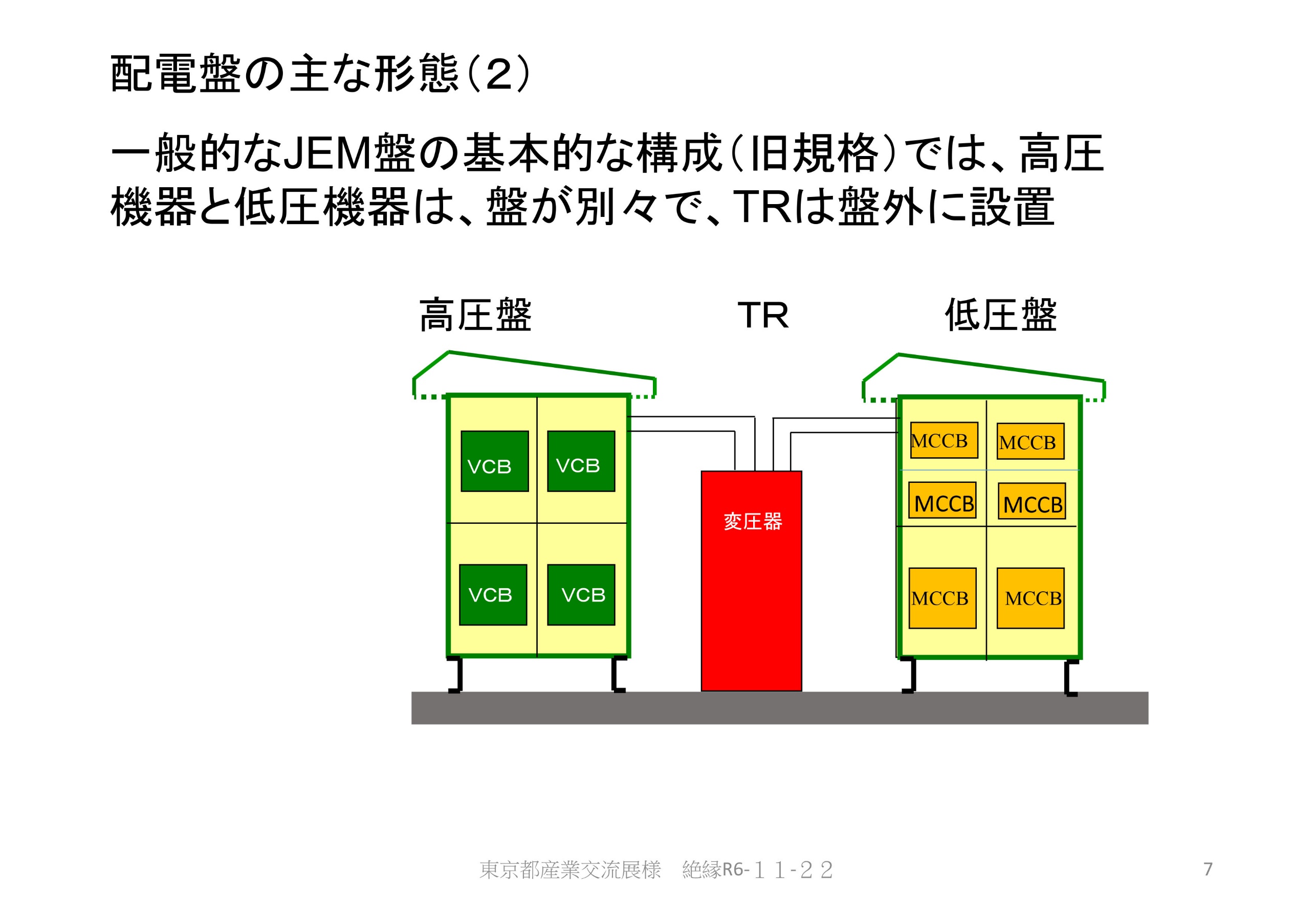 対して、JEM1425によるJEM規格盤は、変圧器は、独立して屋外に配置されています。