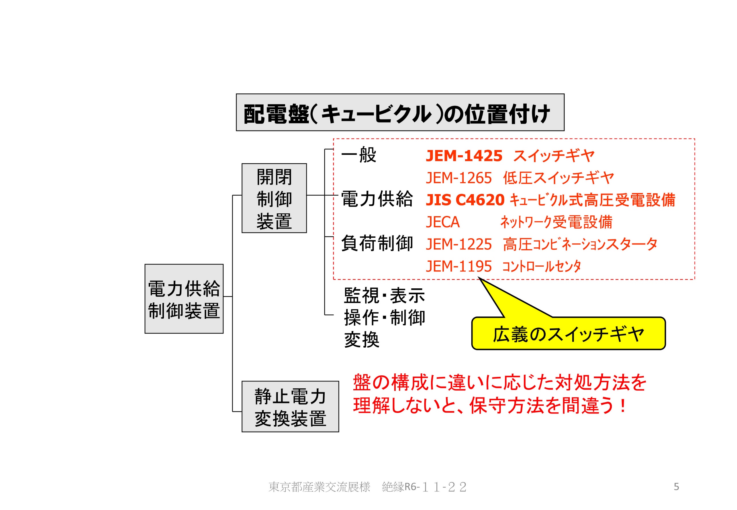 まずは、配電盤の種類ですが、高圧電気管理技術者のみなさんが担当している配電盤の規格として代表的なものとしては、JEM1425と、JIS C4620があります。
